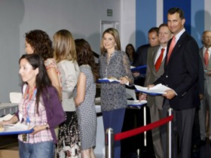 Don Felipe y Doña Letizia, que han viajado a la capital aragonesa en AVE, han sido recibidos en el recinto por el presidente del Gobierno de Aragón, Marcelino Iglesias; el alcalde de Zaragoza, Juan Alberto Belloch; el Delegado del Gobierno, Javier Fernaández, y el presidente de Expoagua, Roque Gistau. Es su cuarta visita a la Expo de Zaragoza ytiene como objetivo rendir un homenaje a los 8.000 trabajadores de la Expo, llegadas de diferentes puntos de la geografía española y también de otros países, que desempeñan múltiples funciones en el recinto de Ranillas.