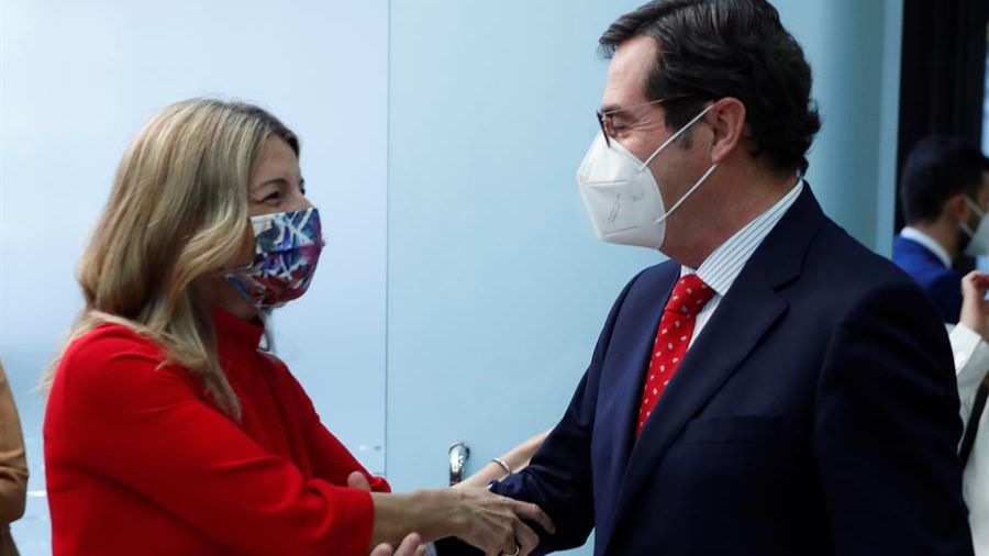 Al comienzo de su intervención, el presidente de la CEOE ha dado su enhorabuena a Díaz por asumir el cargo de vicepresidenta tercera tras la marcha del Ejecutivo del líder de Unidas Podemos, Pablo Iglesias.