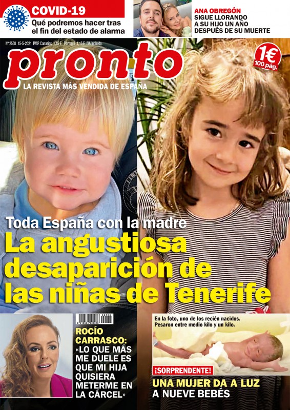 La desaparición de las dos niñas de Tenerife y su padre continúa copando la atención de la prensa. Pronto desvela las últimas horas de las niñas y el angustioso llamamiento de la madre de las pequeñas. Otros protagonistas de la publicación son Rocío Carrasco, que afirma en portada que lo más le duele es que su hija la quiera "meter" en la cárcel.