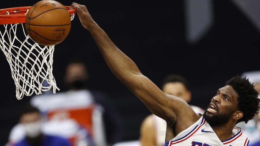 El punto culminante indiscutible de la noche de Embiid se produjo en la transición, una bandeja tambaleante pero elegante y una bandeja seguida de su celebración inspirada en Triple H.