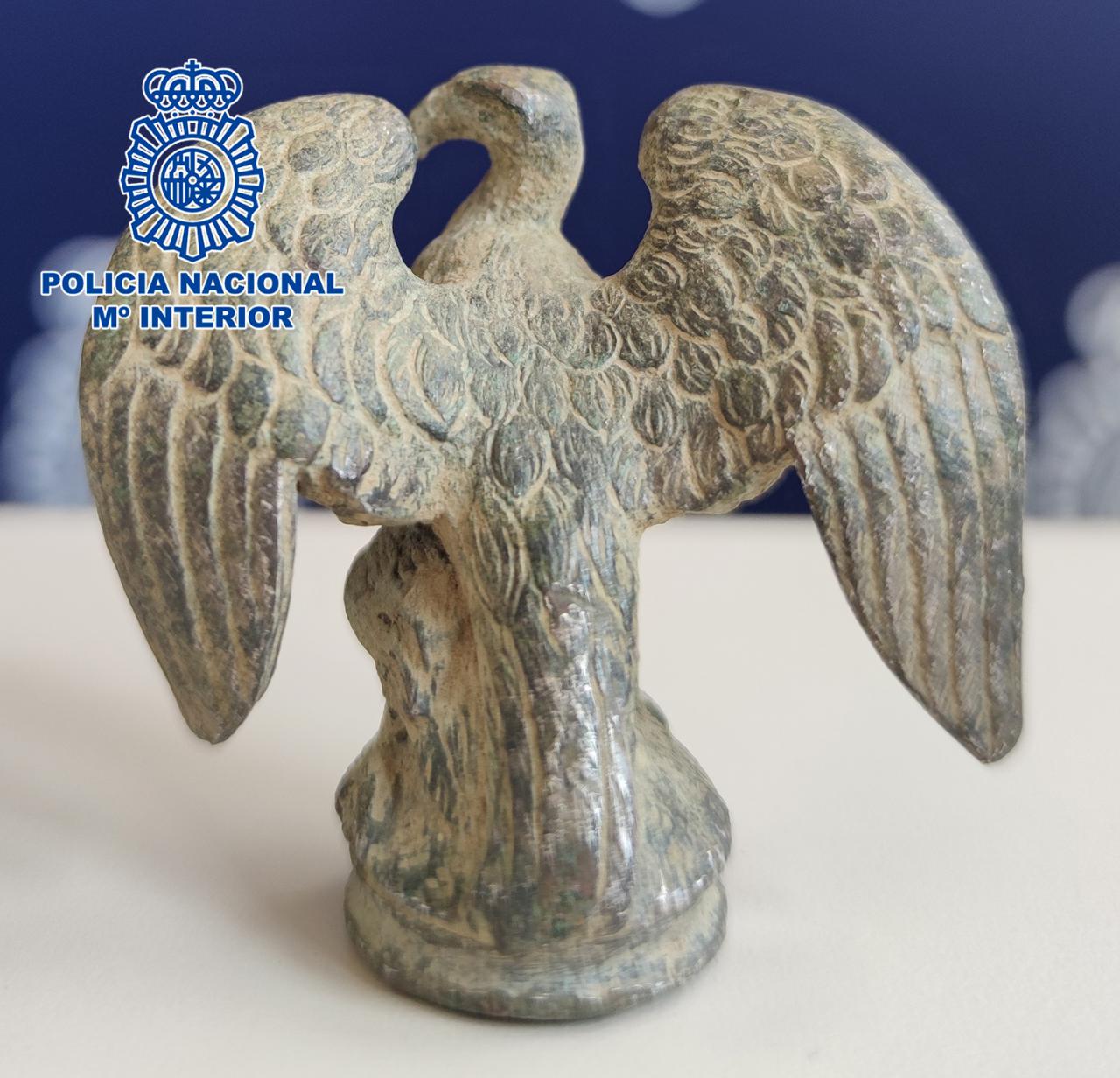 Agentes de la Policía Nacional han hecho entrega de diversas piezas arqueológicas a los Museos Provinciales de Cáceres y Badajoz. Se trata de 495 monedas romanas del siglo III-IV d.C y otras piezas como un águila identificativa de las legiones romanas y dos hachas neolíticas.