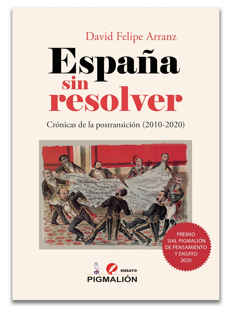 De década “poco prodigiosa” pero de “ritmo vertiginoso” califica el filólogo y periodista vallisoletano David Felipe Arranz los diez últimos años de política y vida social española, en su último libro España sin resolver. Crónicas de la postransición (Pigmalión), reconocido con el Premio Internacional de Pensamiento y Ensayo 2020 que otorga esta editorial.