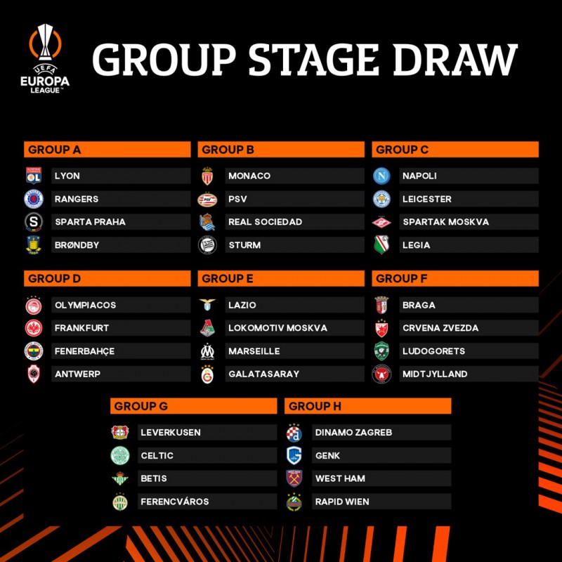 El sorteo de la Liga Europa reunió otros grupo cargados de alicientes. Especialmente llamativo es el Grupo C con el Nápoles y el Leicester inglés junto al Spartak Moscú y el Legia.