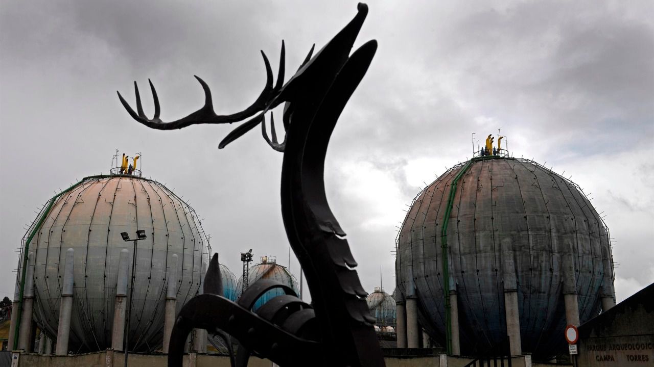 Vista de los depósitos de gas de la empresa Repsol en La Campa Torres de Gijón. (Foto: EFE)