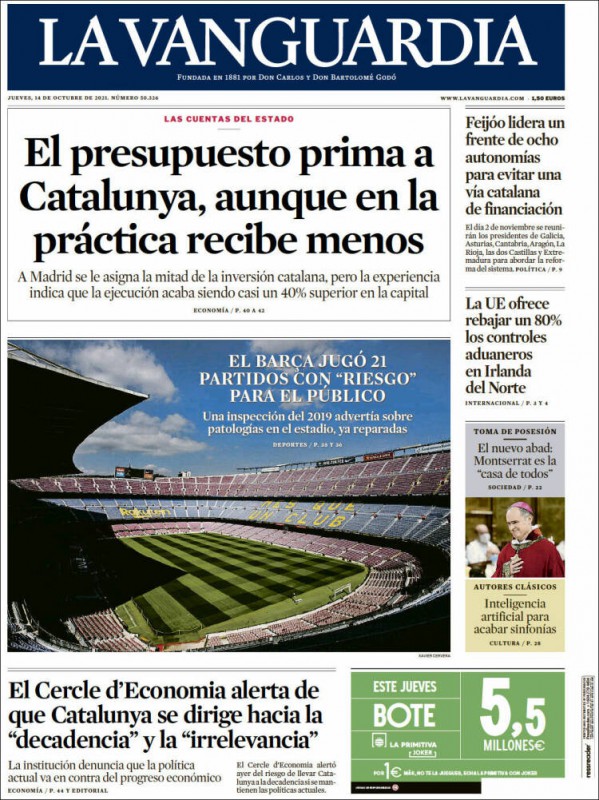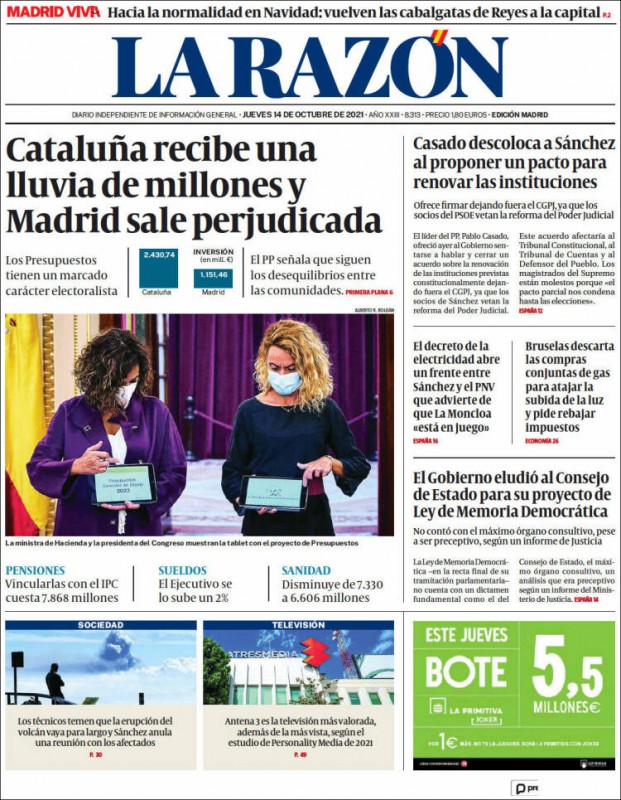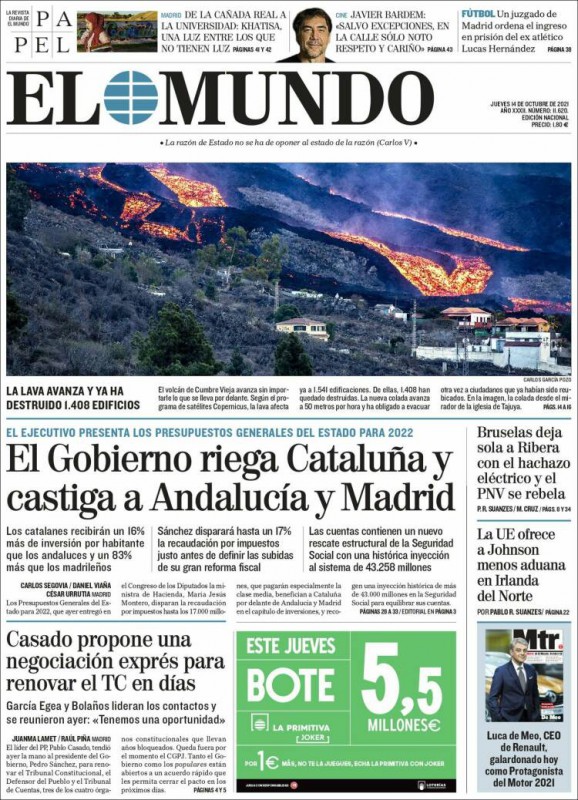 Las portadas de los periódicos de este jueves 14 de octubre