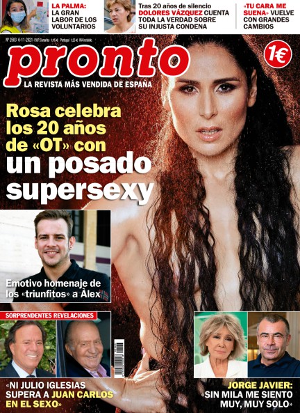 La cantante Rosa ha compartido en sus redes sociales posados sugerentes para celebrar el 20º aniversario de Operación Triunfo, el programa que le permitió saltar a la fama y participar en Eurovisión. La revista Pronto recoge las instantáneas en su edición de esta semana, en cuyas páginas recoge también declaraciones de Jorge Javier Vázquez sobre Mila Ximénez y repasa el contenido del documental protagonizado por Dolores Vázquez sobre el caso Wanninkhof.