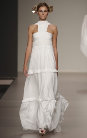 Juana Martín se ha inspirado en los setenta, para los vestidos minis y las líneas rectas depuradas. Ha deshilachado la rafia y la ha llevado a todas las prendas femeninas, incluido el bañador. Para acabar, quince vestidos negros largos, muy trabajados, con volantes, volúmenes, organizas drapeadas y un toque de pluma para la noche sofisticada.