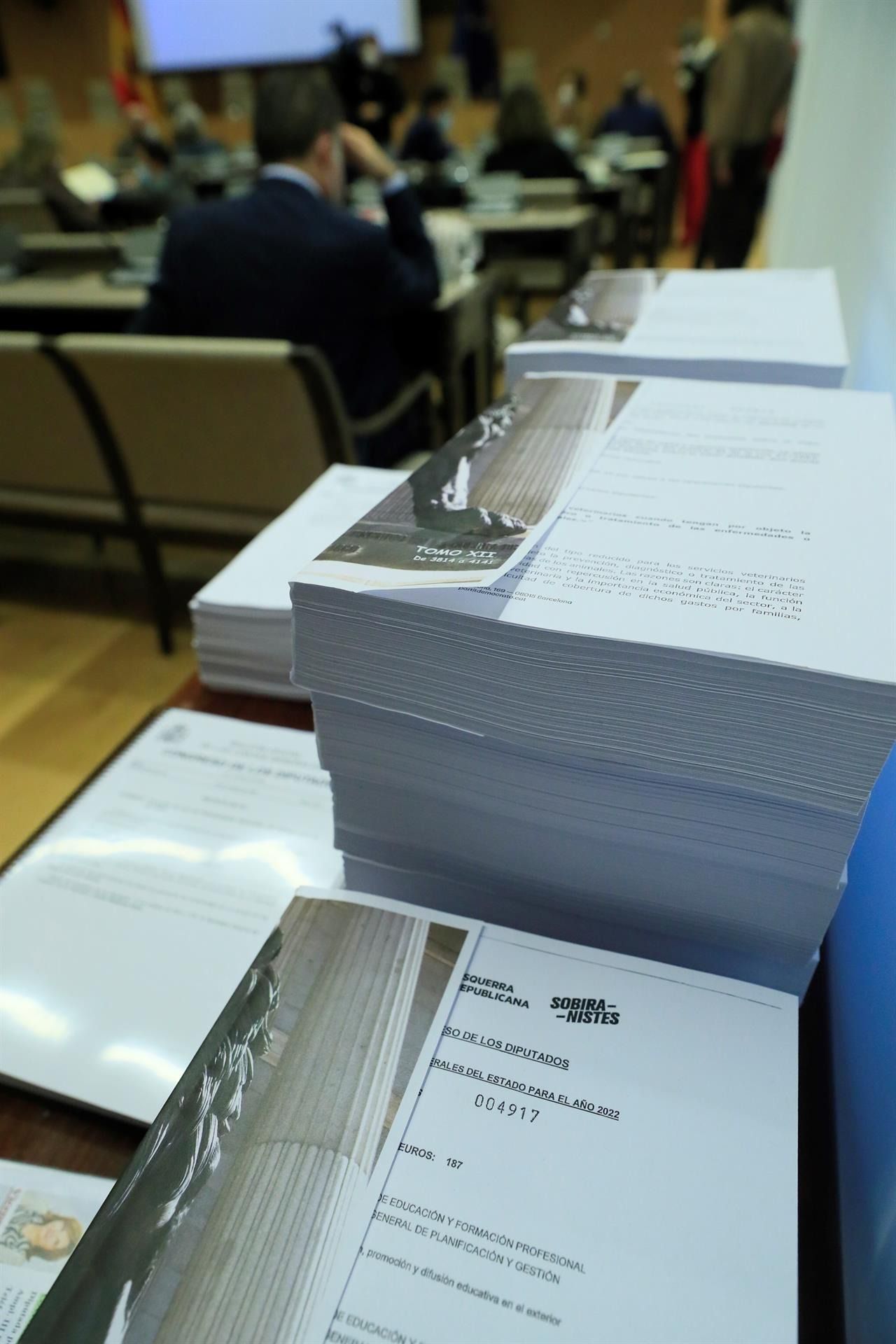 | Vista de las enmiendas a los Presupuestos antes de la Junta de Portavoces del Congreso celebrada este martes. (Foto: EFE/ Fernando Alvarado) |