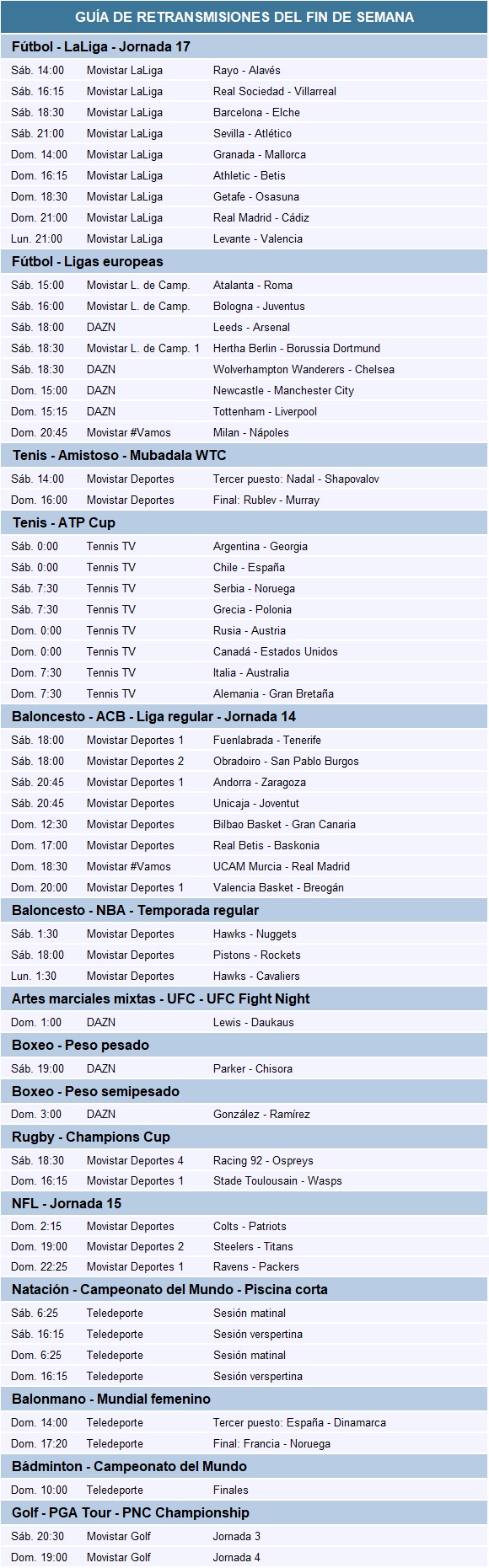 Guía de las retransmisiones deportivas del fin de semana. Liga casi navideña