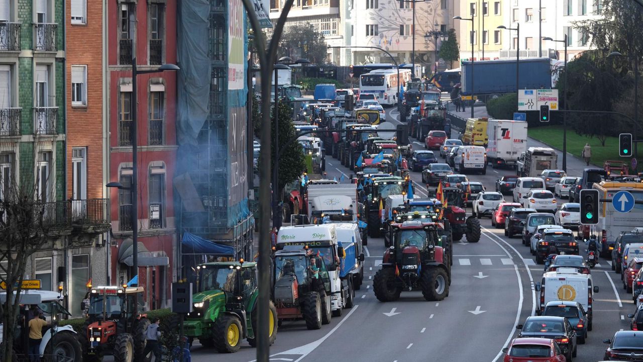 Una gran tractorada, con cerca de quinientos vehículos agrícolas provenientes de distintos puntos de Asturias, ha colapsado este miércoles las calles del centro de Oviedo en una protesta ganadera por el "abandono" del campo y la "asfixia" a la que están sometidos los productores, y que ha finalizado con una carga policial frente a la sede de Presidencia del Principado.