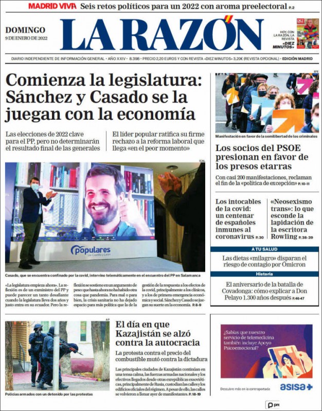 Las portadas de los periódicos de este domingo, 9 de enero