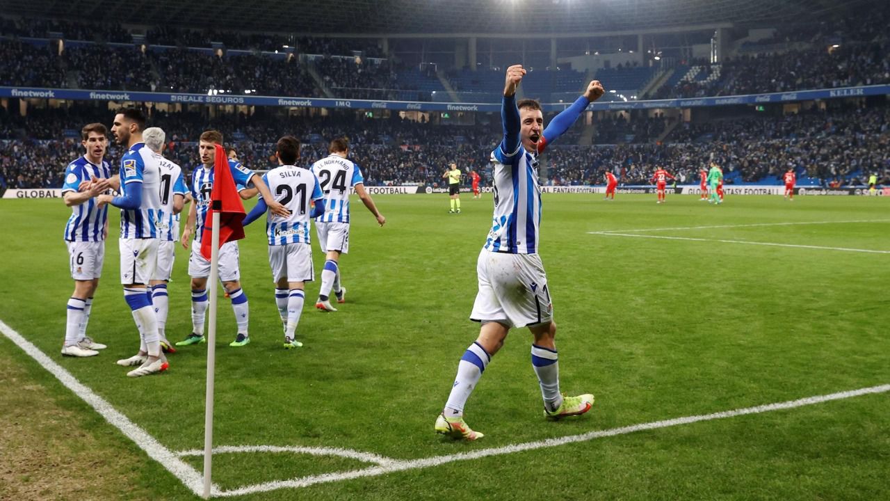 2- Real Sociedad: Remiro; Zaldua, Aihén Muñoz (Diego Rico, min. 63), Elustondo, Le Normand; Guevara (Zubimendi, min. 78); Mikel Merino, David Silva (Rafinha, min. 63), Januzaj (Zubeldia, min. 86); Mikel Oyarzabal y Sorloth (Portu, min. 86).