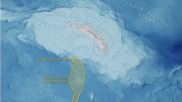 En julio de 2017, un iceberg gigante llamado A 68 se desprendió de la Antartica y comenzó un viaje a lo largo del océano del sur. Tres años y medio después, la principal parte del iceberg, llamada A-68A, se desplazó preocupantemente cerca de la isla de Georgia del Sur.