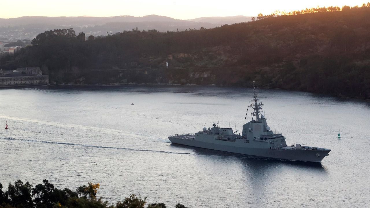 La fragata Blas de Lezo zarpa del Arsenal Militar de Ferrol para dirigirse al mar Negro ante la escalada de tensión entre Rusia y Ucrania. (Foto: EFE)