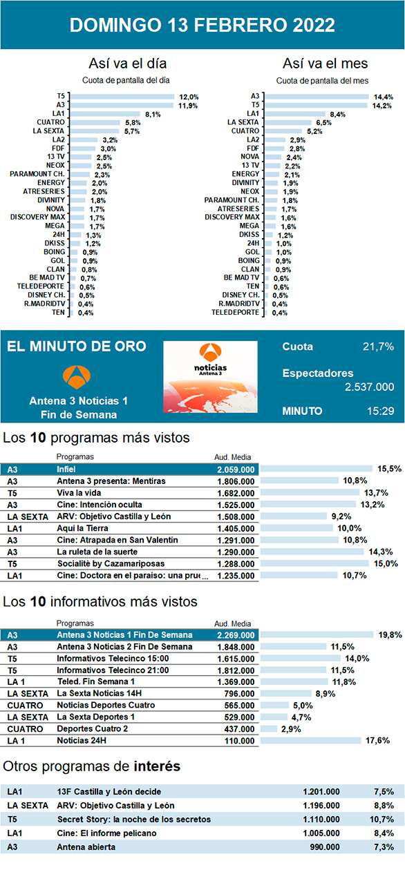 Este domingo estuvo marcado por las elecciones de Castilla y León. La Sexta se impuso a La 1 con su especial de Al Rojo Vivo: Objetivo Castilla y León.