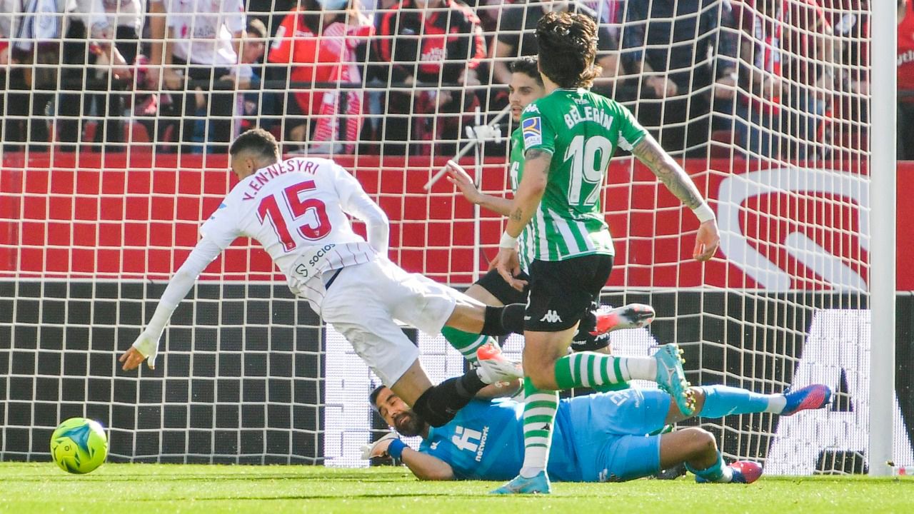 Derbi grande en el Sánchez Pizjuán. El más elitista que se recuerda, pues el Sevilla marcha segundo en LaLiga y el Betis, tercero. Y ambos compiten en los octavos de final de la Europa League. Con la tribuna repleta hasta el límite de las restricciones sanitarias, la atmósfera en Nervión rezumaba pasión, ardor e intensidad, el marco habitual de este tipo de encuentros. Y sólo el conjunto entrenado por Julen Lopetegui correspondería con el volcánico ambiente generado. Añadiendo fuego sobre el césped.