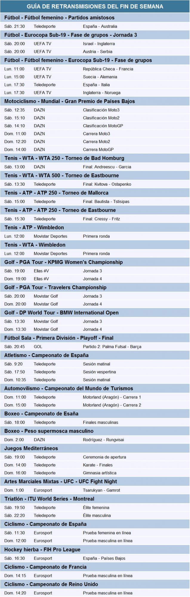 Guía de las retransmisiones deportivas del fin de semana | Vida sin fútbol
