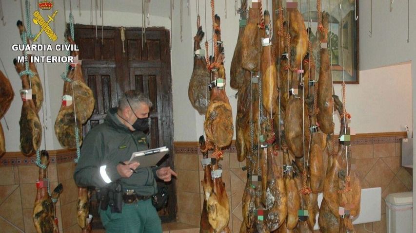 La Guardia Civil se ha incautado de 624 jamones y 16 paletas así como de 4.000 kilos de carne de caza mayor y otros 200 de productos cárnicos que se comercializaban desde empresas y un secadero clandestino de la sierra de Huelva con etiquetado fraudulento y sin garantizar la trazabilidad.