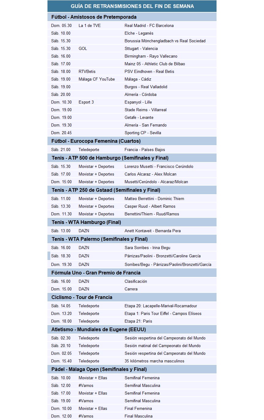 El Clásico, que se disputa el domingo a las 5:00 horas peninsular española, es la principal atracción. El final del Tour de Francia y Carlos Alcaraz, otras cuestiones a tener en cuenta.