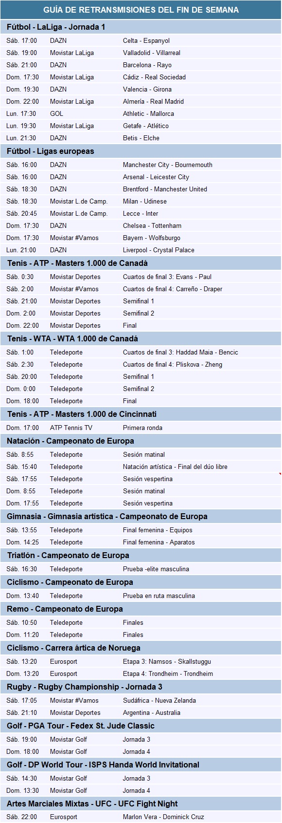 Guía de las retransmisiones deportivas del fin de semana | Renace LaLiga