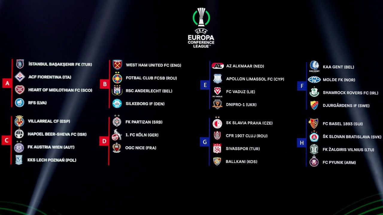 Con fortuna, el Villarreal, emparejado con el Hapoel Beer-Sheva israelí, el Austria Viena austríaco y el Lech Poznan polaco, no debería tener problemas para acceder a la siguiente fase de la Liga Conferencia, torneo en el que otro favorito, el West Ham, compartirá grupo con dos clubes históricos.