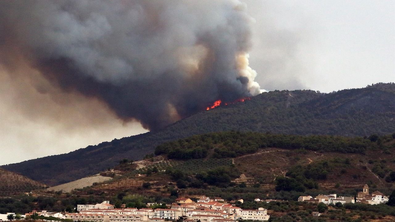 Vista del incendio forestal que sigue activo en el paraje ‘Los Guájares’ en las comarcas granadinas de la Costa y Lecrín. (Foto: EFE)