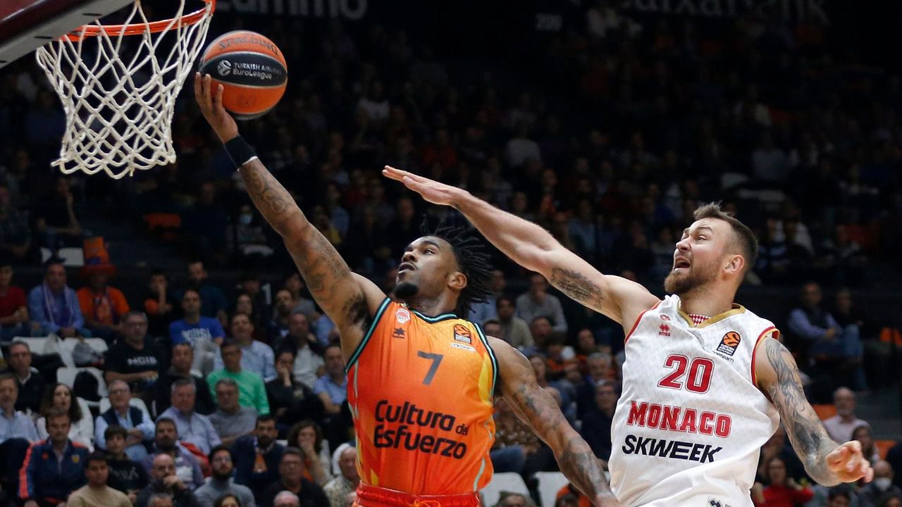 El cuadro valenciano se impone al monegasco por 89-84 en un choque donde pudo contener con una gran defensa a Mike James, el máximo anotador de la competición europea.