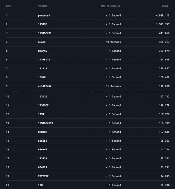 "Si comparamos esta lista con la del año pasado, se ven pocos cambios (en 2021 la más usada fue 12345); destaca especialmente la entrada al tercer puesto de la palabra 'swing', que rompe la secuencia de contraseñas numéricas que prácticamente copan el top 10 del listado".