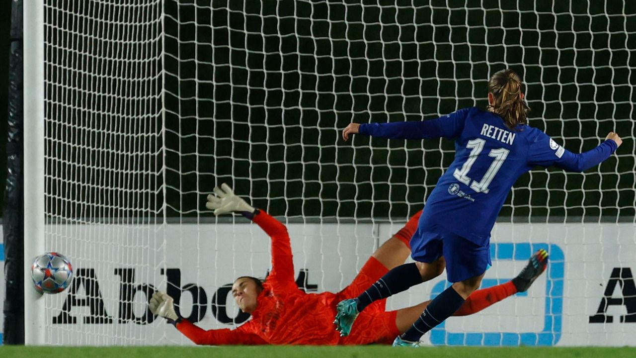 El Chelsea, lanzado con 10 triunfos consecutivos entre Liga y Champions, tuvo una triple ocasión en el 2' desde un saque de esquina: un remate de cabeza despejado por Misa, otro por Ivana y el tercero de Kerr lo repelió el travesaño.