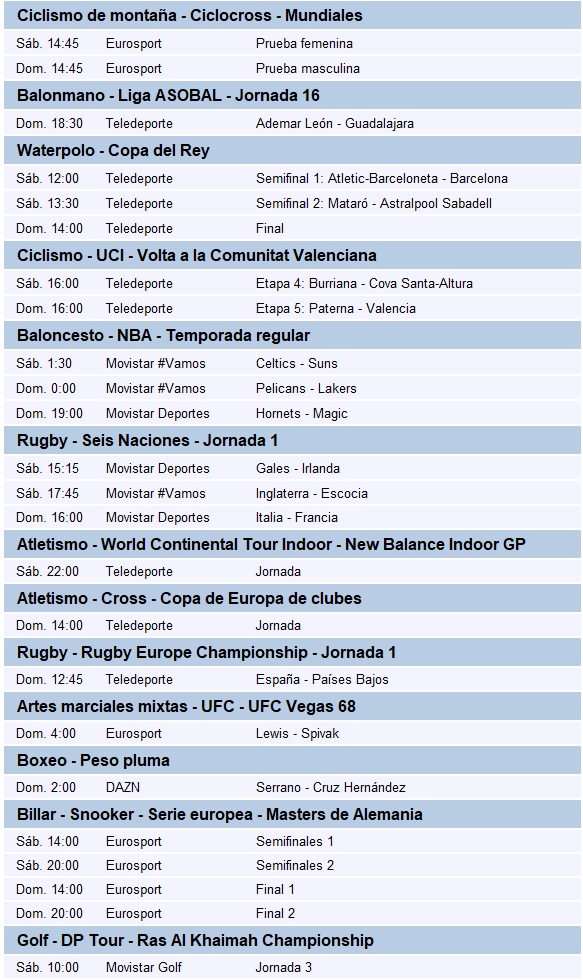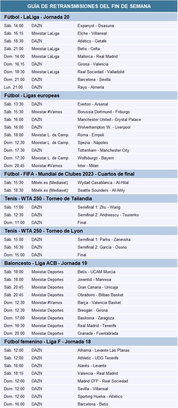 Seis Naciones, LaLiga, Mundial de Clubes, NBA y mucho más.