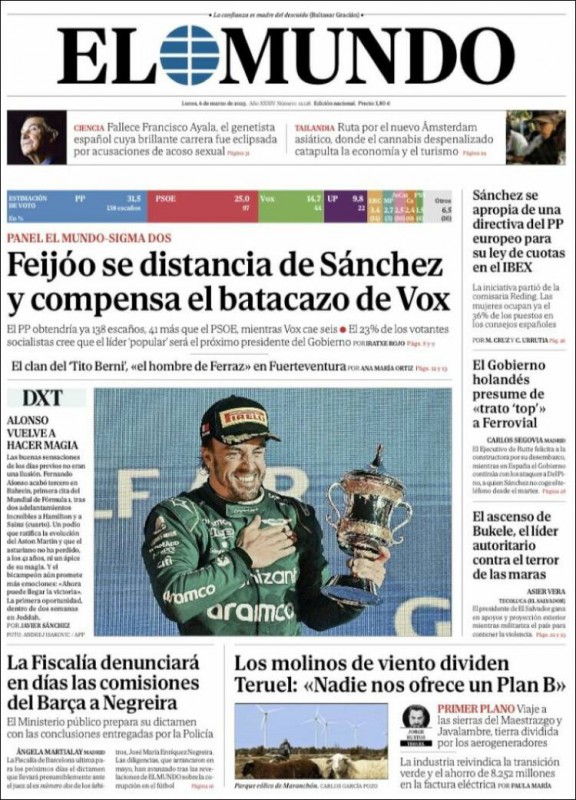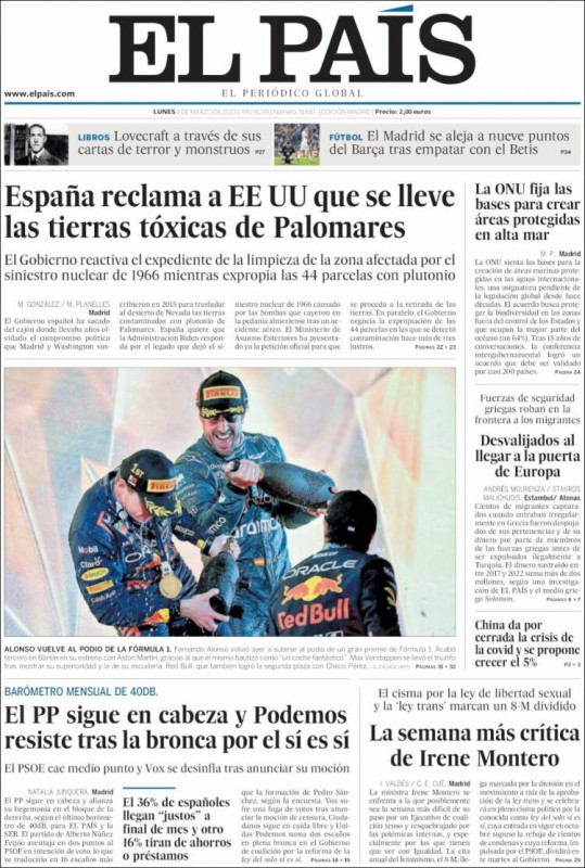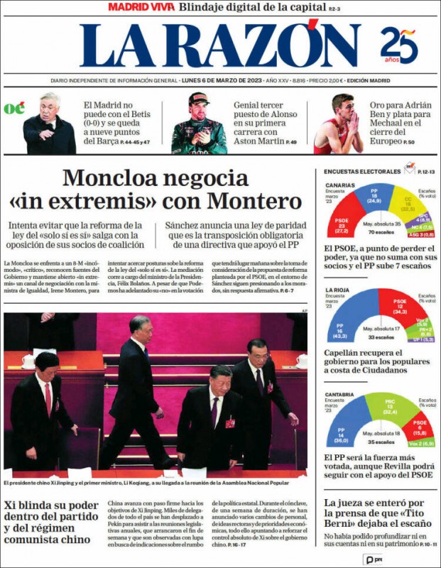 Las portadas de los periódicos de este lunes, 6 de marzo