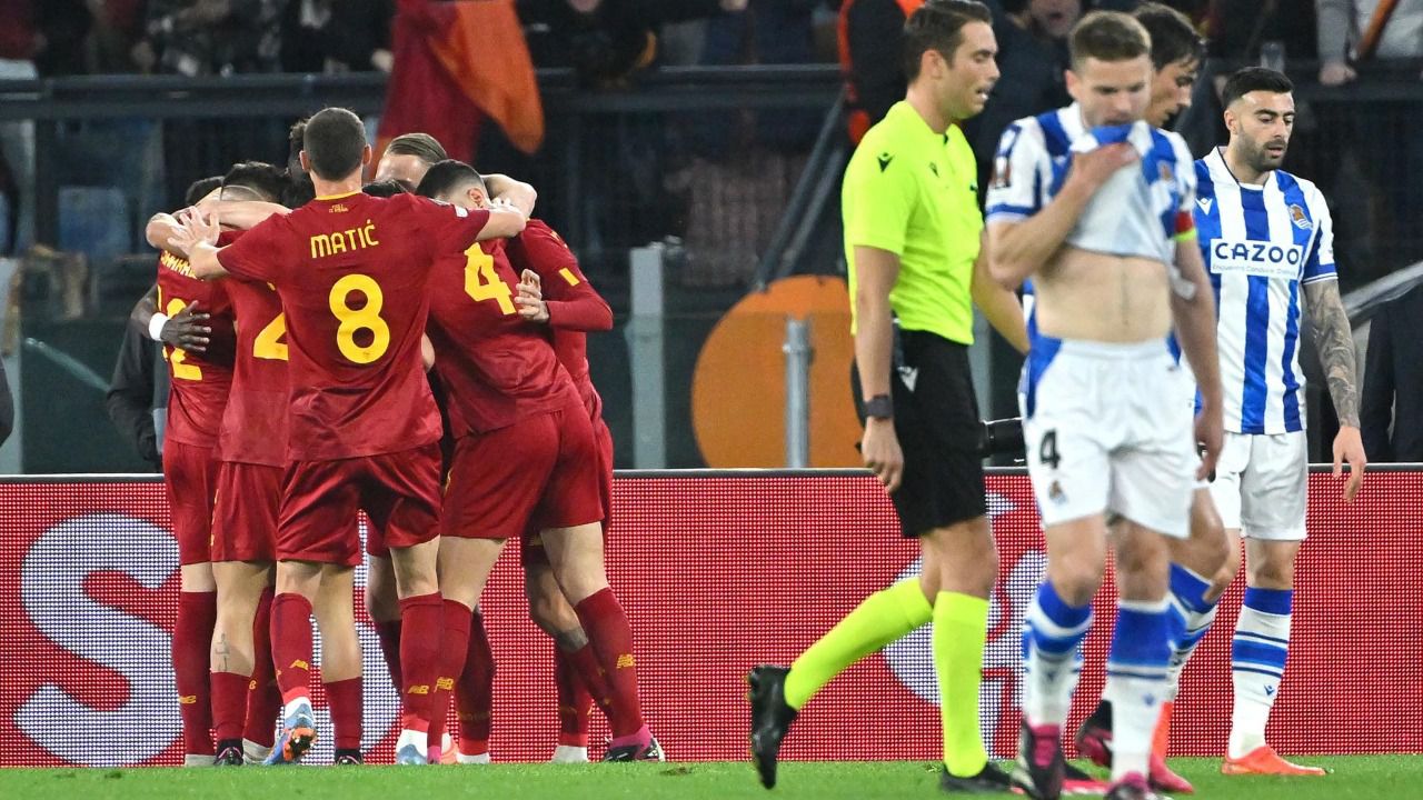Consiguió estabilizarse tras los dos golpes recibidos y se asentó en el partido. Recortó distancias con un gol de Zalewski que animó a los 'giallorossi'. Un espejismo que duró poco, hasta que Kumbulla decidió quitarse la capa de héroe con la que se vistió el jueves ante la Real para colocarse el atuendo de villano y, con una patada injustificable, sin balón de por medio, provocó un penalti en contra y su expulsión justo al borde del descanso.