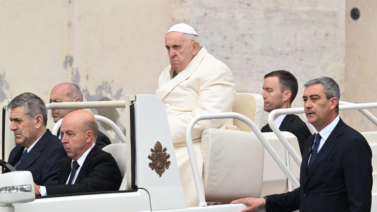 Francisco, aún convaleciente, reapareció en la plaza de San Pedro ante unos 30.000 fieles -según cifras de la Santa Sede- después de pasar tres días ingresado en el hospital Gemelli de Roma a causa de una bronquitis que le sobrevino el pasado miércoles tras la audiencia general.