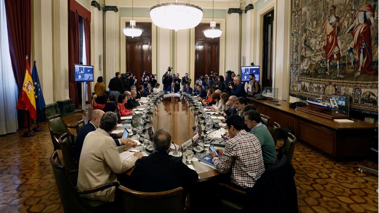 Vista general de la reunión de la mesa nacional de la sequía este miércoles en el Ministerio de Agricultura para analizar la situación histórica de falta de agua en el país que amenaza a la producción agrícola y ganadera. (Foto: Efe/Sergio Pérez)