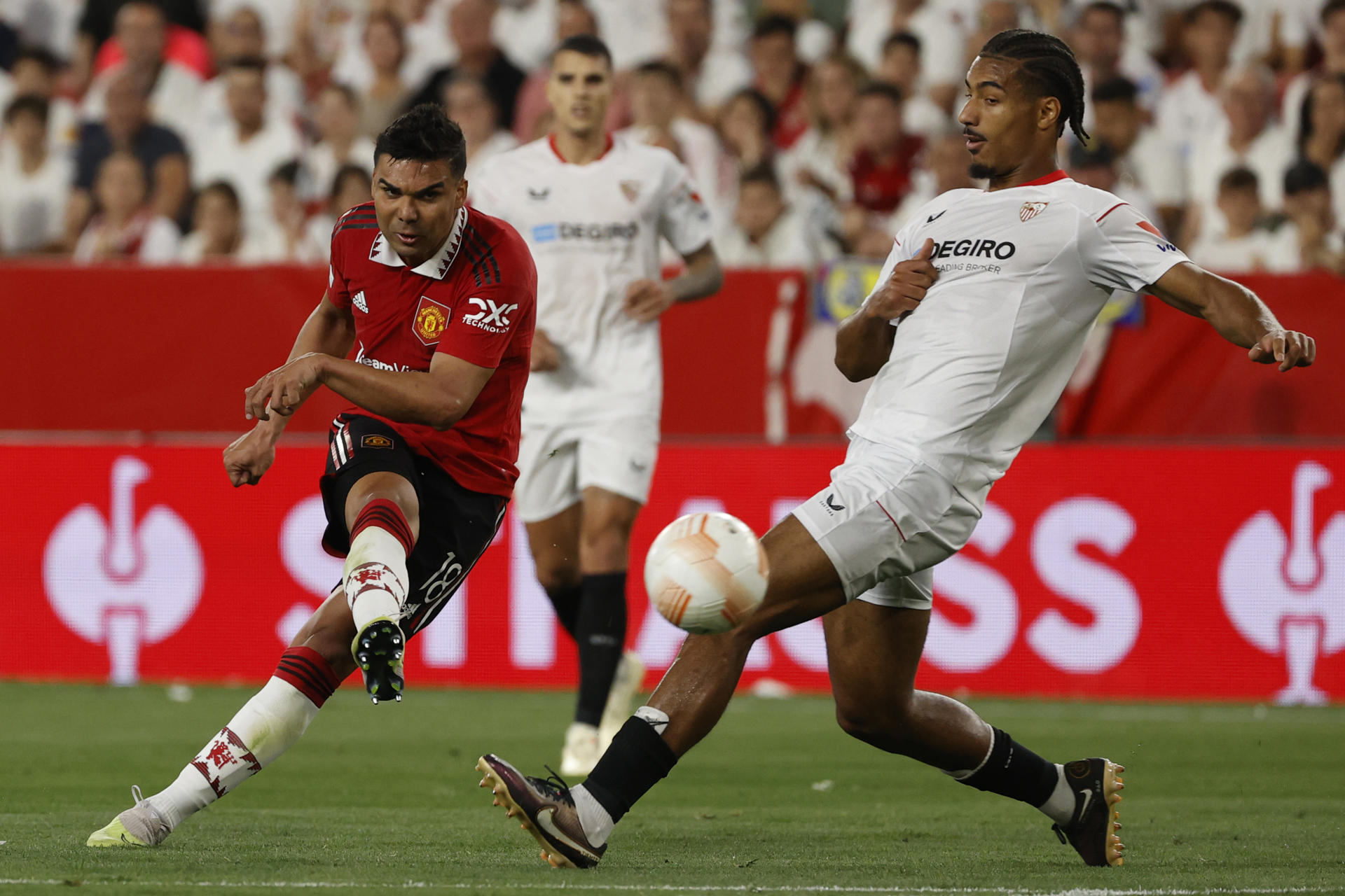 Dijo en la previa Mendilibar que "en la primera media hora del partido de Manchester dices 'vaya la que me va a caer', pero poco a poco se fue cambiando". Esa lectura es con la que intentó conectar Ten Hag. Incluyó en la reanudación al tocado Marcus Rashford -y sentenció a Sancho- para abordar la remontada estadística y de sensaciones. En cambio, el arquitcto neerlandés, de gran trabajo en los 'Red Devils', se topó con un gol de Loïc Badé. El central remató con el hombró un saque de esquina y la pelota dibujó una parábola que se coló tras tocar el larguero -minuto 48-. Un golazo geométrico que dejó muy herido el pretendido resurgir de los isleños, torturados por su línea defensiva se contaminó hasta De Gea, que regaló a En-Nesyri su doblete en el minuto 82-. Comparecieron titulares como Shaw y Fred, con Weghorst en liza para azuzar los centros laterales, pero el asedio postrero no fructificó en remates claros. Y Nervión declaró el añorado estado de felicidad. Como en 2020, dejan en la cuneta al United y siempre que han superado los octavos de final en este torneo (seis veces) se han proclamado campeones.