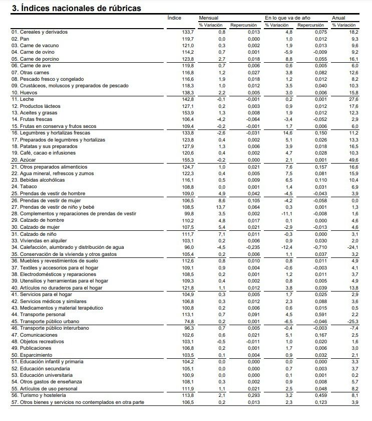 Las menos inflacionistas en términos mensuales fueron Aragón (0,4 %) y Madrid, Comunidad Valenciana y Cataluña (0,5 % las tres).