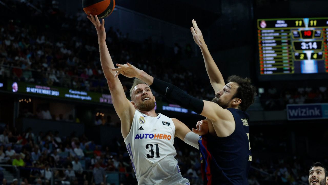 A pesar de contar con 11 puntos de renta con 55 segundos de juego, el técnico lituano no se fiaba y pidió un nuevo tiempo muerto. Tiempo que aprovechó el WiZink para elogiar a los suyos con gritos de "Madrid" y "cómo no te voy a querer". Una distancia que se mantuvo y el Barça salvó la temporada con su vigésima Liga mientras que el club de la capital española se despide con un 'doblete' Supercopa de España - Euroliga. Un nuevo 3-0 se añadió a la pugna por el título de la ACB, con 10 en 17 finales.