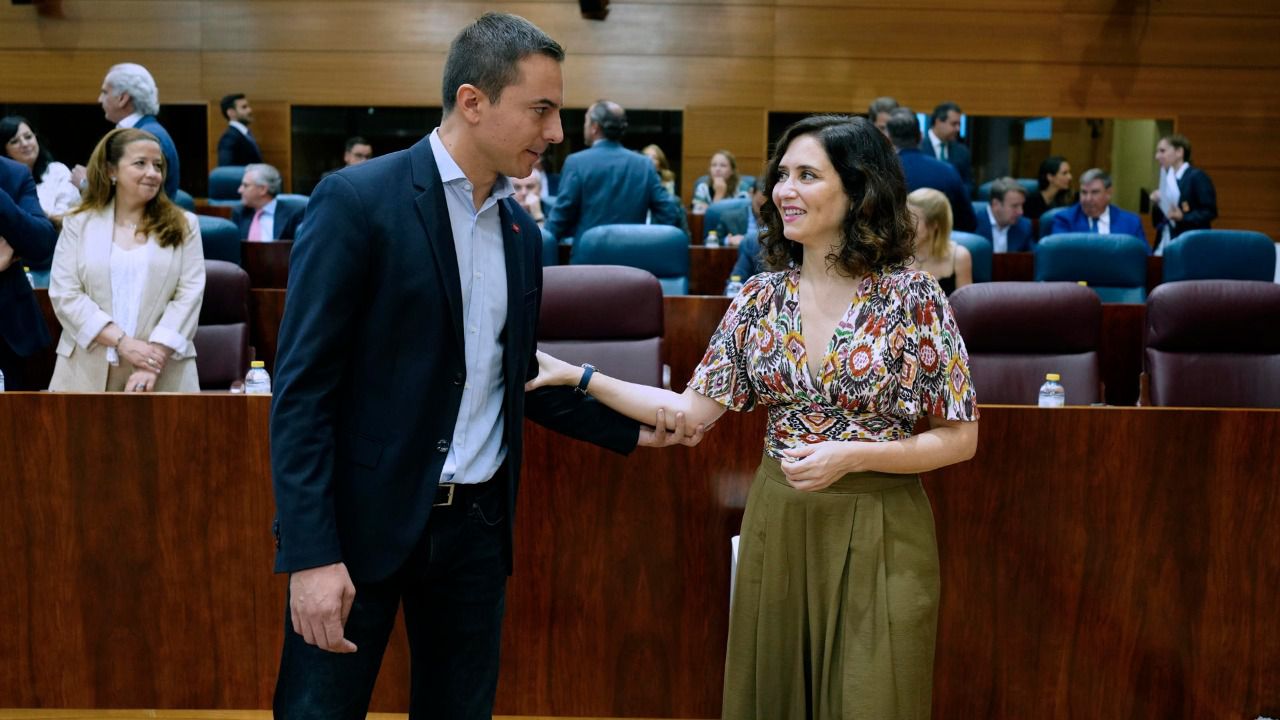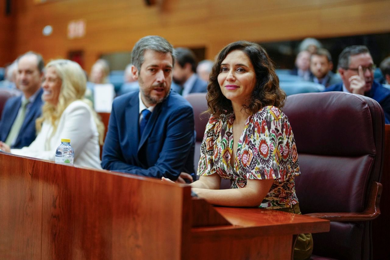 Díaz Ayuso ha recibido el saludo cariñoso de los diputados de la Asamblea de Madrid.