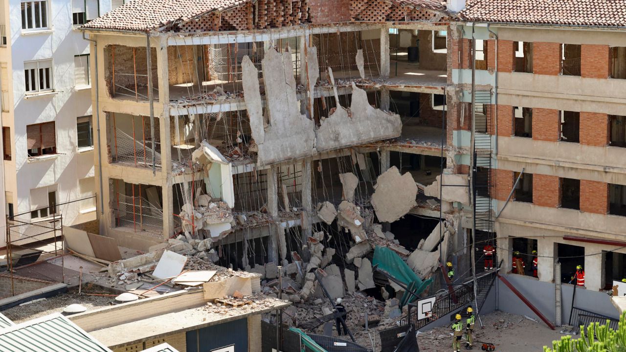 Un trabajador ha muerto al quedar sepultado este martes bajo los escombros tras derrumbarse una parte del céntrico colegio logroñés de las