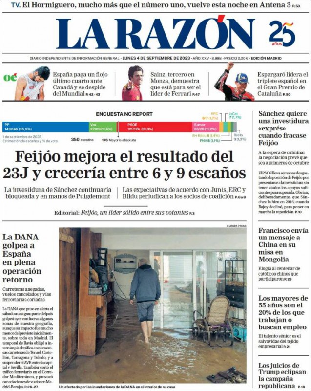 Las portadas de los periódicos de este lunes, 4 de septiembre
