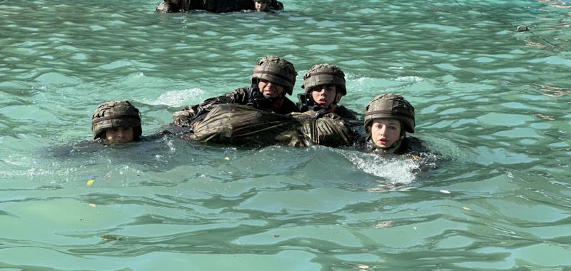 El álbum, compuesto por cerca de una veintena de fotos, incluye la participación de la heredera al trono en ejercicios de tiro, en marchas de grupo y cruzando a nado una piscina con el uniforme.