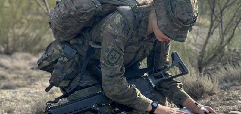Academia General Militar de Zaragoza, en el que participó en sus primeras maniobras con uniforme de camuflaje, con casco y la cara pintada y portando el fusil de asalto.