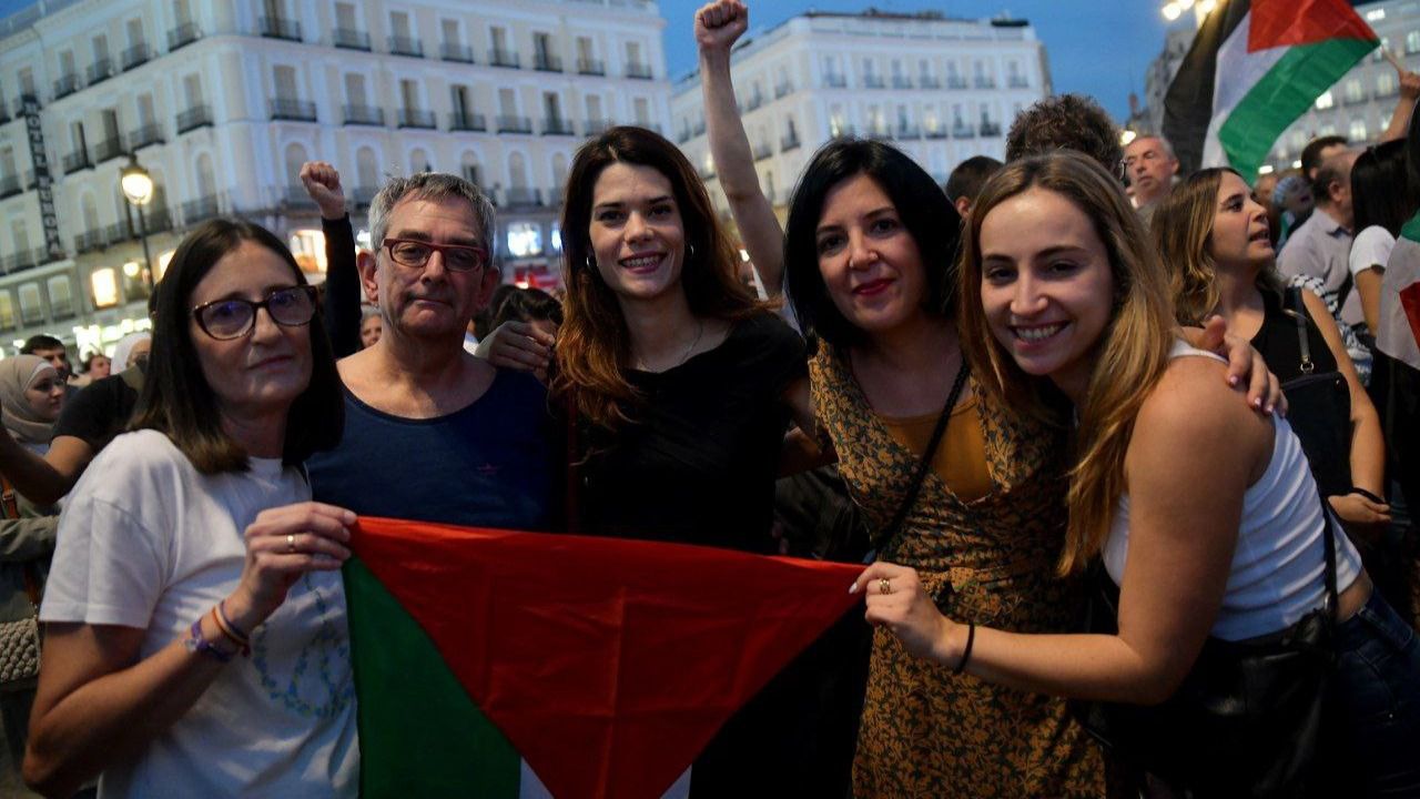 La concentración, en la que también se han ondeado banderas marroquíes, republicanas y del partido comunista, ha sido convocada por diversas organizaciones de ciudadanos palestinos y partidos de izquierda integrados en Sumar, por lo que se han unido también simpatizantes de esas formaciones.