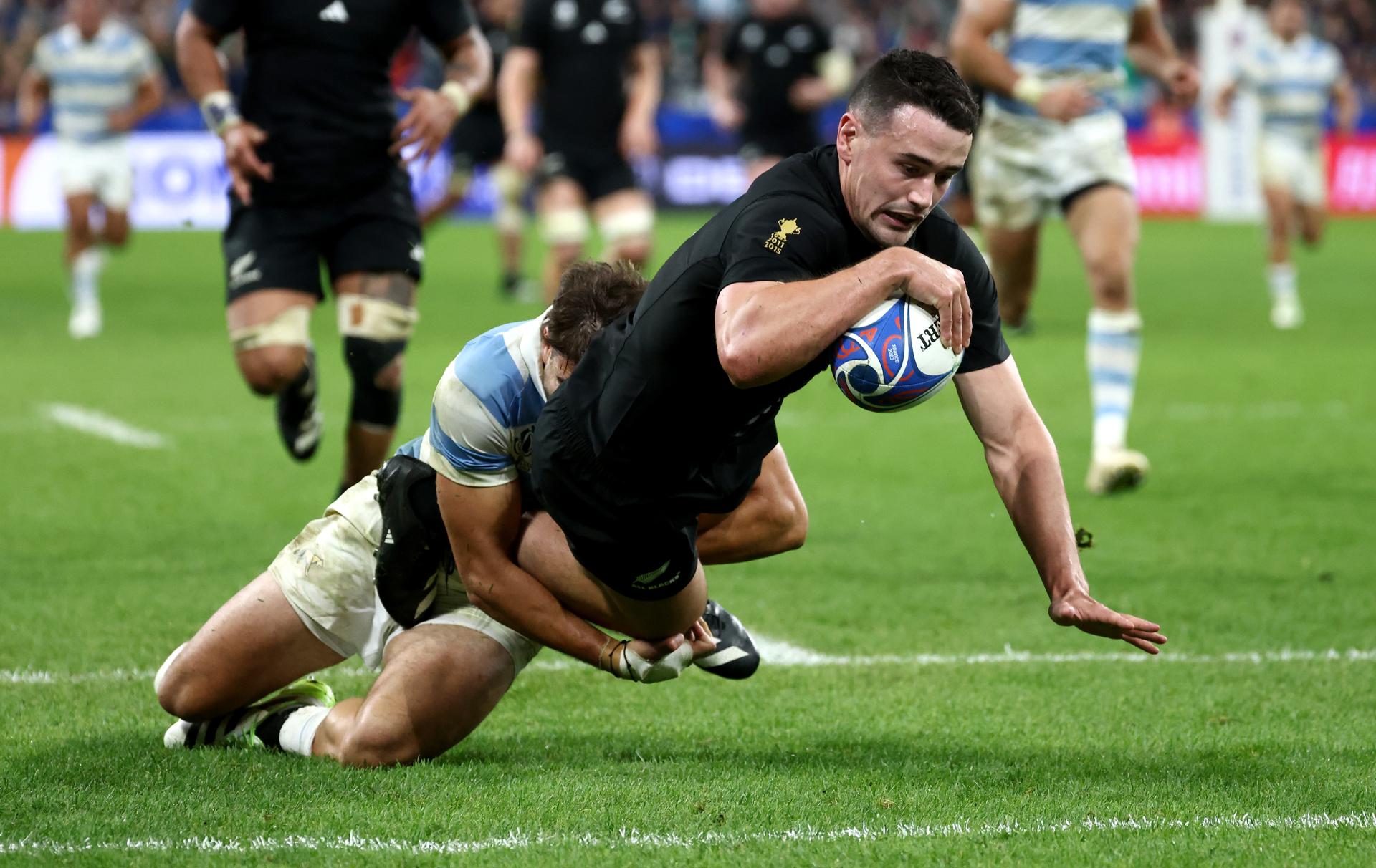 En el minuto 62 emergió imperial Will Jordan. El ala de Crusaders firmó otros dos ensayos -minutos 62 y 73-, el segundo de ellos formidable. Inició un contraataque personal en el que condujo más de 50 metros, rompiendo el placaje de dos defensas argentinos y pateando un auto pase que recogió, pleno de velocidad, para autografiar su hat-trick. Tiene 25 años y ha anotado tantos ensayos como partidos con los 'All Blacks' ha disputado (30). Se trata de un jugador histórico que suma ocho ensayos en este torneo, igualando el récord de Jonah Lomu, Bryan Habana y Julian Savea. Casi nada. Y es la punta de lanza del primer equipo que anota más de 30 puntos en una semifinal del Mundial desde 2007, camino de su cuarta copa Webb Ellis.