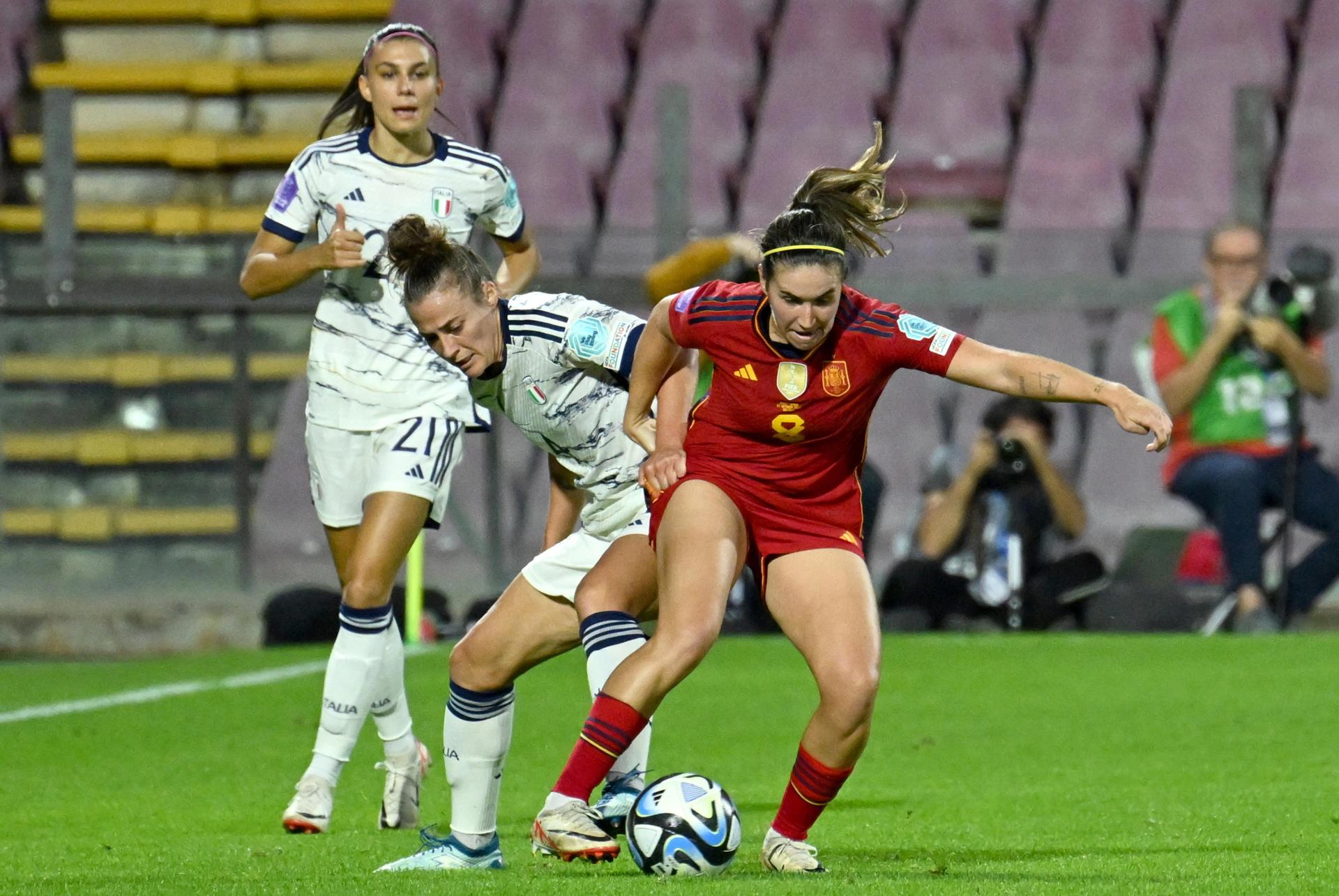 Entró entonces España en una posesión horizontal y salpicada de algunos errores que terminaron de trompicar su circulación de pelota. El muro italiano de cinco zagueras se volvió rocoso y ganaron confianza las locales hasta el punto de adelantar su línea defensiva. En ese ajedrez no supieron las creativas visitantes buscar la profundidad a la espalda del esquema transalpino. El cierre de filas negó a las favoritas el desequilibrio entre líneas que tanto gusta a Alexia y Aitana.