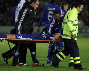 De la Red, en una acción ofensiva del Real Madrid, mientras salía del área local cayó de forma imprevista al césped, sin que estuviese nadie a su alrededor. El jugador madridista fue rápidamente atendido por los médicos del Real Madrid, permaneciendo inmóvil unos tres minutos, tras lo cual fue trasladado en camilla a los vestuarios del estadio.