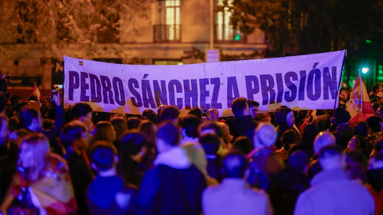 Ferraz, en protesta contra la ley de amnistía que negocian PSOE y Junts para facilitar la investidura de Pedro Sánchez como presidente del Gobierno.