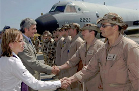 Acompañada por el jefe del Estado Mayor de la Defensa (General del Aire José Julio Rodríguez), Chacón llegó a las 06:00 hora local a la capital del país africano y fue recibida a pie de pista por su colega galo que le acompañará durante toda la visita a Djibuti.