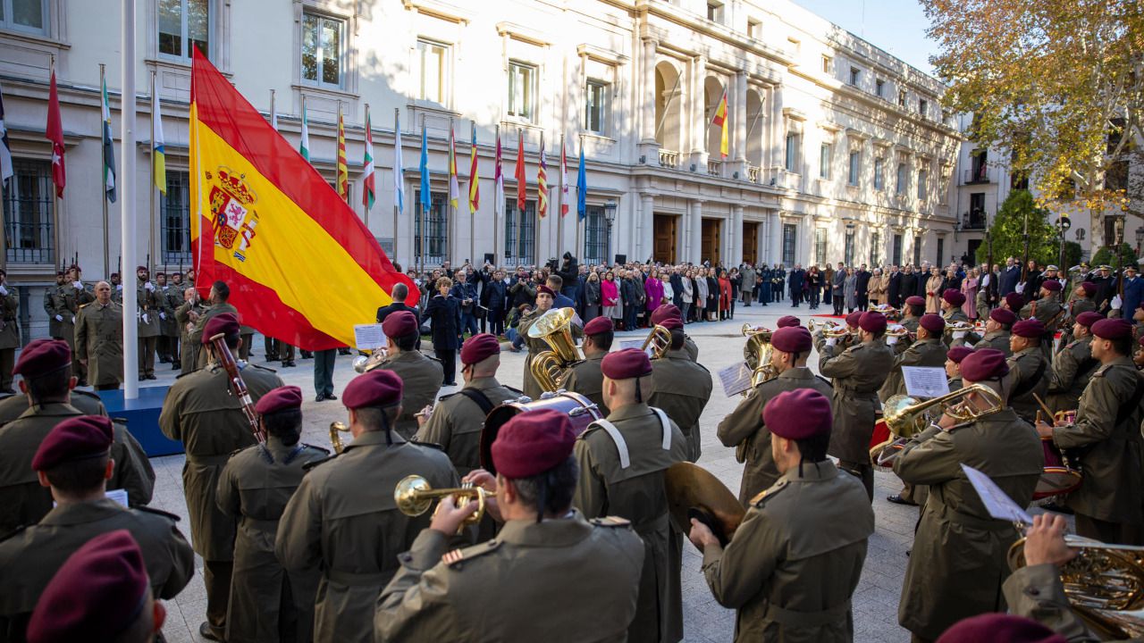Los actos comenzarán a las 10.30 con el izado de la bandera, que abandonó ya su tradicional escenario en Colón y se ubica en la Plaza de la Marina Española, frente al Senado. Presidirán el acto los presidentes de la Cámara Alta y la Cámara Baja, Pedro Rollán y Francina Armengol, acompañados por el Jefe de Estado Mayor de la Defensa y personal del Ejército de Tierra, la Armada, el Ejército del Aire y la Guardia Civil.