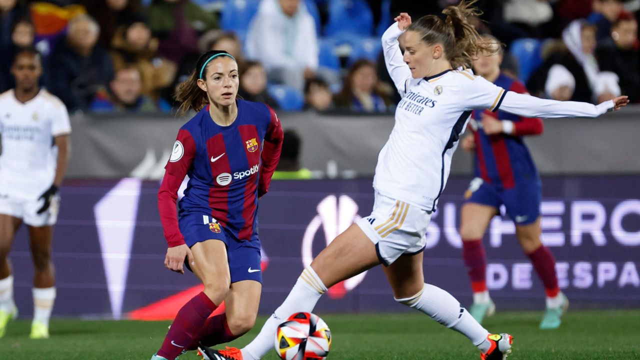 El choque en un Butarque con buena entrada fue disputado en su inicio. Ambas escuadras pretendían ser profundas por los costados, atacando más el Barça por el izquierdo y el Madrid por el derecho. Esa banda fue por la que el actual campeón generó su primera llegada peligrosa en la que Aitana Bonmatí, que llegaba a esta cita tras hacer de nuevo historia con su primer The Best, habilitó a Batlle cuyo centro estuvo cerca de rematar Paralluelo en el corazón del área.